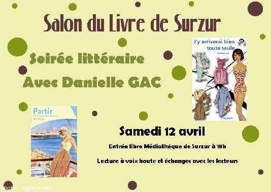 Dans le cadre du 7e Salon du Livre de Surzur, commune du Pays de Vannes, salon qui aura lieu le dimanche 13 avril 2008 (10 h-18 h) dans le complexe sportif, la médiathèque organise le samedi 12 avril à 18 h pour les fans de littérature et d'humour, une soirée littéraire avec Danielle Gac (auteure éditée chez Coop Breizh).