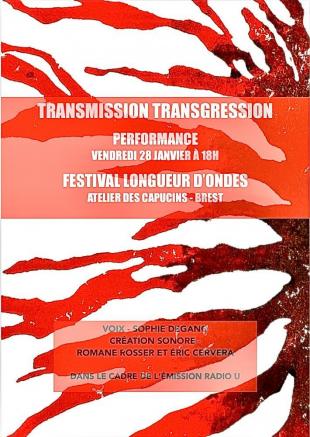 La performance "Transmission Transgression" est programmée vendredi 28 janvier à 18h à l’Atelier des Capucins à Brest dans le cadre du Festival Longueur d’Ondes.