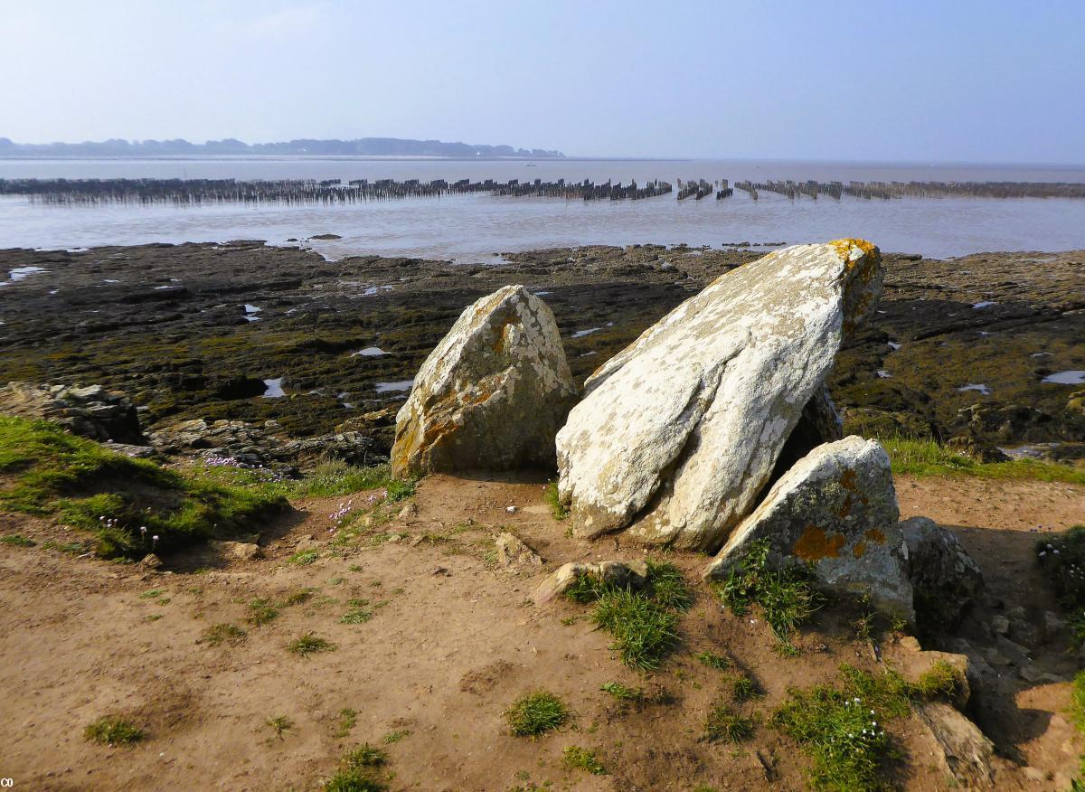 La seconde boucle plus courte, nous fait passer devant le dolmen du Crapaud et la côte où l’on peut voir les « bouchots », piquets en bois sur lesquels se développent les moules.