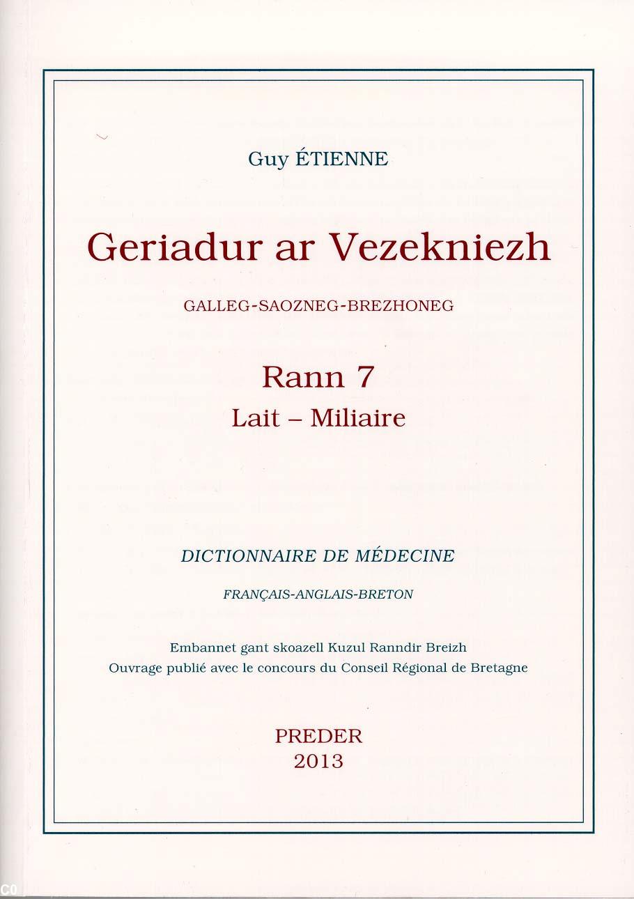 Avec le tome 7, voilà publié plus de la moitié de Geriadur ar Vezekniezh. À cette étape, il n'est pas superflu de revoir les points forts et les points faibles du breton dans le langage contemporain. Délaissé pendant un millénaire par ses locuteurs dès qu'ils se souciaient de leur avenir, il garde un handicap encore loin d'être résolu. Dans ses profondeurs pourtant dorment de formidables gisements de matière verbale à peine entamés par l'exploitation qui en est menée depuis deux siècles. Les locuteurs bretons d'aujourd'hui ont à leur disposition deux bases de ressources dans le domaine du savoir et de la pensée : d'une part, un stock de données langagières vierges, exemptes de toute usure historique, sédimentées depuis l'époque du celtique jusqu'aux parlers qui en sont issus, d'autre part, une “langue internationale”, réceptacle bouillonnant d'emprunts majoritairement grecs anciens et latins dans lequel les penseurs et chercheurs occidentaux ont coutume de puiser depuis le Moyen Âge. Après une période de tâtonnements sur la direction à prendre, soit un vocabulaire savant tout breton (préconisé par Vallée), soit l'adoption des termes internationaux dans toutes les disciplines hormis la littérature (solution proposée par Roparz Hemon), c'est une voie moyenne qui a prévalu : emprunter les étiquettes communes (dire oksigen et non trenkgan comme le faisait Vallée), par contre engager les ressources du breton dans l'expression des notions vives (tandis que Roparz Hemon suggérait un breton technique izoliñ en face du français isoler et de l'anglais isolate, il est attribué à chaque acception du terme un vocable particulier : disfuiñ, goubarañ, dredañ, emdennañ, digenveziñ, digemperzhiañ, eskantañ…) Aucune règle stricte cependant. Dans nombre de cas où le terme international pouvait prendre place, l'auteur du Dictionnaire de la médecine a préféré revenir à Vallée : soit pour une raison de précision (celle par exemple de l'éventail des préfixes bretons is-, gou-, ol-, lav-, endan- plus grande que celle de leurs équivalents hypo-, sub-, sous-), soit encore à cause de la simplicité formelle (la brièveté d'un elruz breton comparée à la dimension de ses correspondants français érythrocytose et anglais polycythaemia) Il n'en reste pas moins, ayons cela toujours présent à l'esprit, qu'un dictionnaire composé en l'absence d'une société de locuteurs ne saurait tenir qu'à un projet de langage. l'ouvrage, 252 p., 15,5 x 22 cm : 22 ¤ ISBN : 978-2-901383-79-6