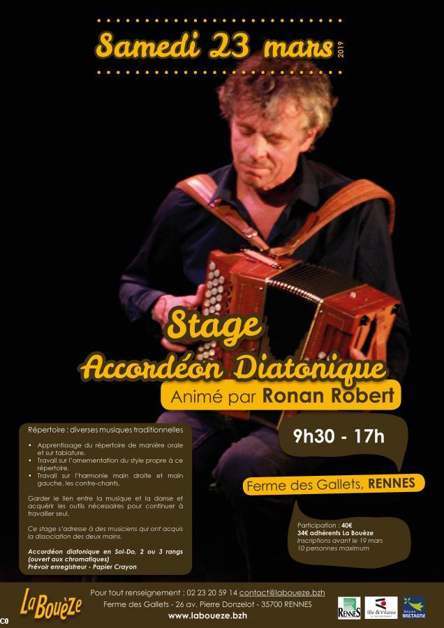 La Bouèze organise un stage le samedi 23 mars pour des accordéonistes souhaitant se perfectionner. Il sera animé par Ronan Robert, musicien incontournable devenu professionnel au sein de Carré Manchot.