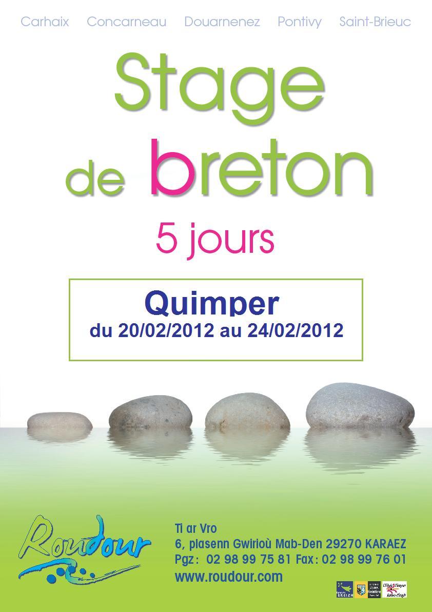 Roudour organise un stage de 5 jours du 20 au 24 février 2012 à Quimper. Les quatre niveaux sont proposés. D'une durée totale de 35h, les cours ont lieu de