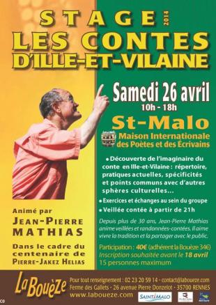 Jean-Pierre Mathias est un conteur professionnel qui anime depuis plus de 30 ans veillées et randonnées. Il est également à l'origine de l'association Graine de contes et encadre de nombreux stages à destination des enfants, des adultes et des professeurs. La journée de St-Malo est organisée par La Bouèze en collaboration avec la Maison internationale des poètes et des écrivains dans le cadre de l'année du centenaire de Pierre-Jakez Hélias. Elle prévoit :