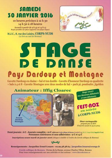 ESKEMM, en collaboration avec la MJC de CORPS-NUDS organise le SAMEDI 30 JANVIER 2016 UN STAGE DE DANSES CONSACRÉ AU TERROIR DARDOUP qui se déroulera à : la Maison des Jeunes et de la