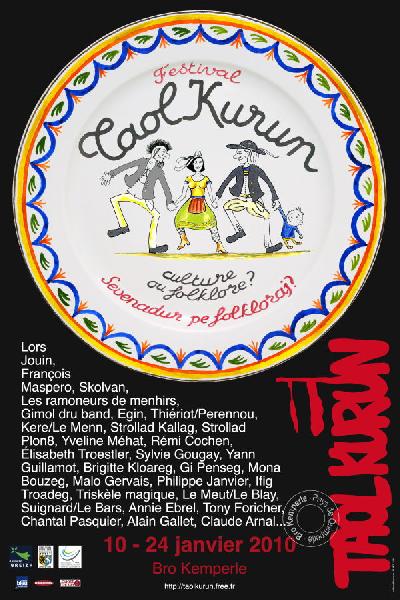 Le festival Taol Kurun organise sept stages, celui d\'Annie Ebrel (kan ha diskan) est complet, mais il reste des places pour : - le samedi 16 janvier à 9h30 : stage de théâtre forum en français avec Chantal Pasquier sur le thème \"culture ou folklore ?\" qui aboutira à une séance de théâtre forum avec le public. Forum suivi d\'une répétition publique du groupe \"strollad Ploneis\". - le samedi 16 janvier à 9h30 : stage de théâtre en breton avec Tony Foricheur, techniques de base, jeu de l\'acteur. - le samedi 16 janvier à 14h00 : stage de danses pour les nuls dans la salle du Koad Kaer à Quimperlé. - le samedi 23 janvier au Trévoux : stages de breton du pays de l\'Aven, avec Mona Bouzeg et deux autres profs. renseignements : 02 98 71 74 94 - 06 79 14 96 87 site : http://taolkurun.free.fr/