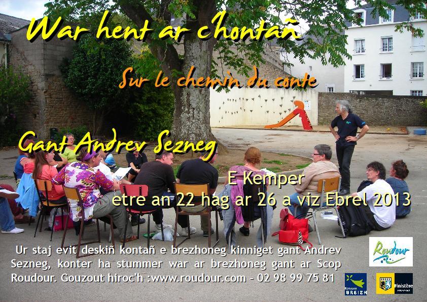 Pour la première fois, Roudour met en place une formation sur le conte en breton. Animée par Andrev Sezneg, conteur et formateur,à Roudour ce stage d'une semaine s'adresse à toutes personnes ayant une bonne compréhension du breton.