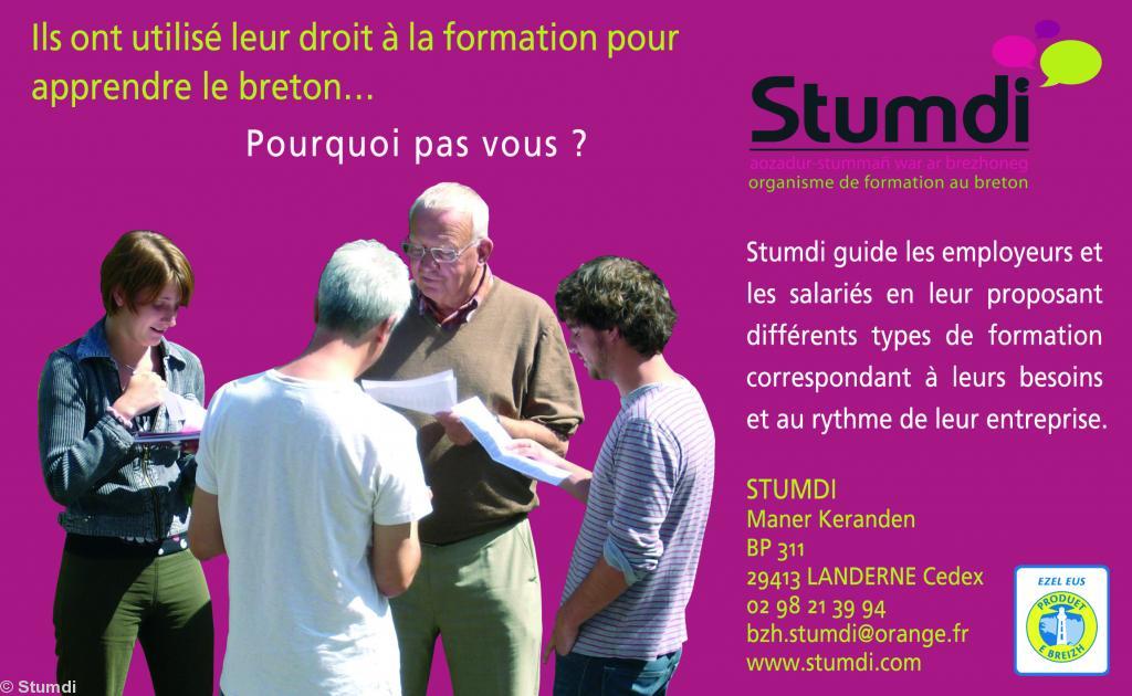 Stumdi propose de septembre 2012 à juin 2013, une formule pour les salariés débutants souhaitant bénéficier des heures acquises au titre du DIF (Droit Individuel à la Formation) pour apprendre le breton :