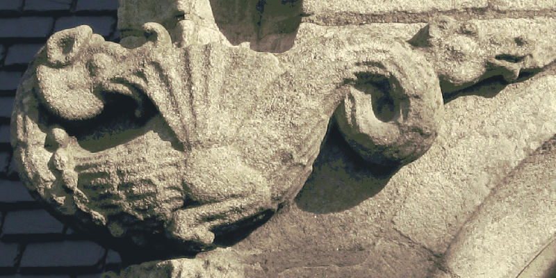 Gardien des lieux sacrés, il veille et protège. Dans la mythologie celtique, il est signe de puissance et fertilité. Mais associé à des forces terrifiantes, il affronte saints ou héros dans des luttes cosmiques. Intégré par l'Église au bestiaire démoniaque, il prend naturellement place dans nos lieux de culte. Les représentations sont nombreuses, le discours prolixe. Nombreux sont en Bretagne les saints pourfendeurs de dragons : Marguerite, Michel ou Georges bien sûr, mais aussi Pol Aurélien, Armel, Efflam, Derrien et bien d'autres. Les figurations abondent. Sablières et charpentes sont colonisées. Les entraits sont engoulés. Corniches et rampants sont envahis.