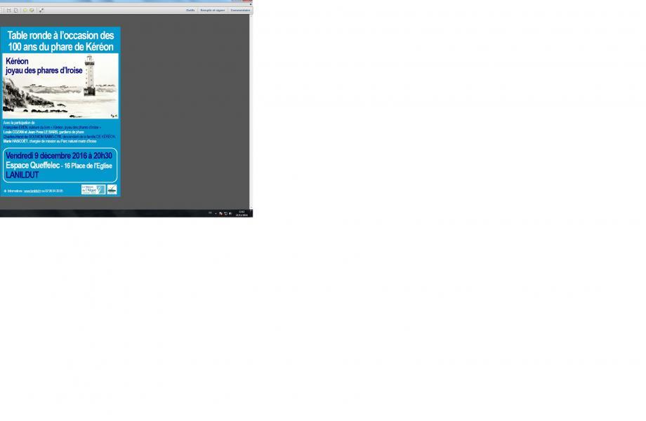 Le phare de Kéréon a 100 ans. Une table ronde autour du livre "Kéréon joyau des phares d'Iroise" de Françoise Even aura lieu le vendredi 9 décembre 2016 à 20 h 30 à Lanildut à l'espace Henri Queffélec.