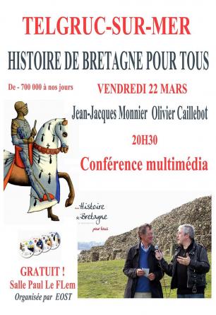 Telgruc sur mer: L’histoire de Bretagne en paroles, musiques et images. L’historien Jean-Jacques Monnier et l’homme de radio Olivier Caillebot, auteurs de L’Histoire de Bretagne pour tous, parcourent toute