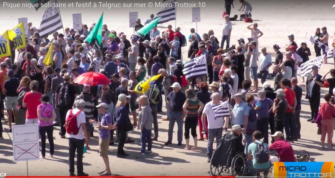 C'est sous un soleil radieux, plus de 25°, une mer bleue azur, et une immense plage de sable fin à marée basse dénommée Traez Bellec, que se sont rassemblées à Telgruc environ 500 personnes venues pour marquer leur désapprobation devant la francisation des noms de lieux et de rues