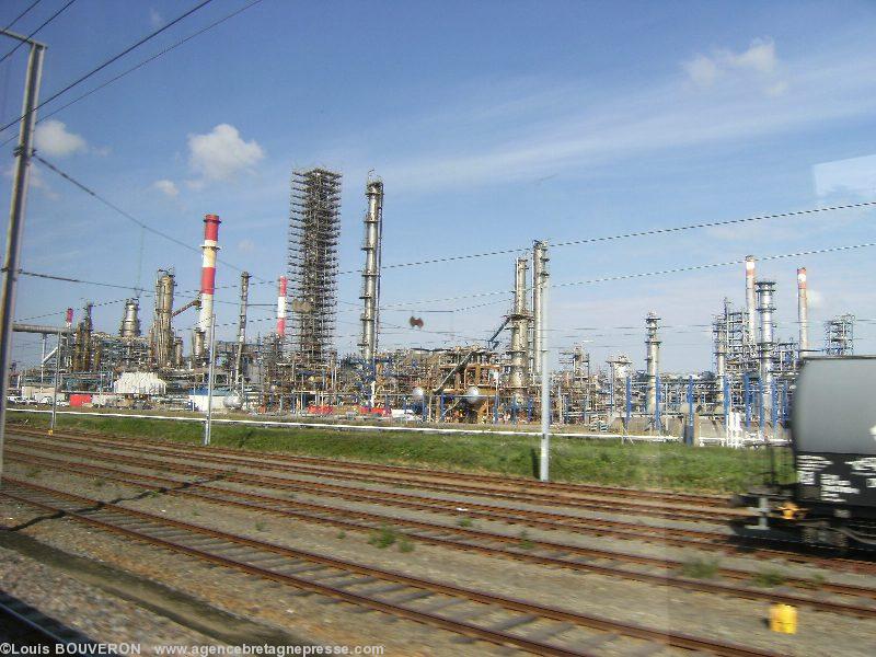 La raffinerie de Donges vue de la ligne de chemin de fer.