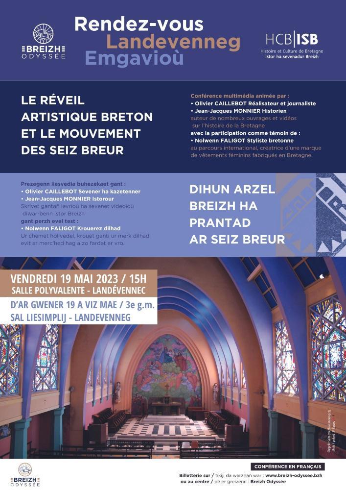 La seconde conférence a lieu à Landévennec le vendredi 19 mai, jour de la Saint –Yves. Ce sera la première des « rencontres de Landevenneg » qui accompagneront la vie de Landévennec au moment où s’ouvre le centre Breizhodyssee, qui mettra au premier plan la culture bretonne, en particulier l’histoire. La conférence est organisée par l’association Histoire et Culture de Bretagne. Olivier Caillebot et Jean-Jacques Monnier présenteront le réveil artistique breton et le mouvement des Seiz Breur qui l’a en bonne partie incarné à partir de 1923. Longtemps tenu pour secondaire, ce mouvement qui est surtout connu dans le domaine des arts décoratifs appliqués, a aussi largement concerné l’architecture, civile ou religieuse. En ce centenaire, il est particulièrement reconnu par les milieux culturels, à défaut de l’être par le monde officiel.