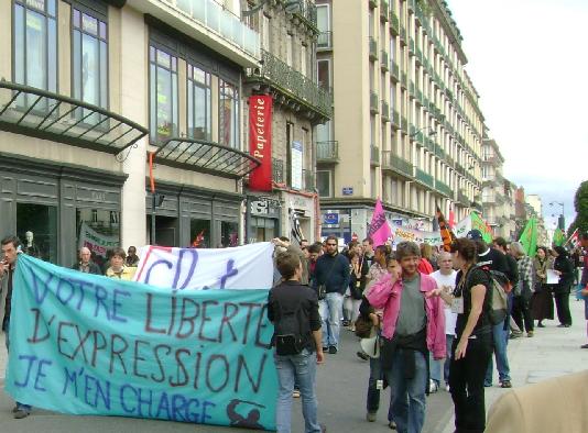 Avec calme : il n'y eut aucun débordement ni aucune dégradation de la part des manifestants, sagement massés derrière la police motorisée . Avec détermination aussi : les prises de parole de partis politiques comme le parti socialiste, le parti communiste, les verts, la Ligue communiste révolutionnaire, de syndicats comme la F.S.U., la CFDT, des grandes associations, comme le Mouvement pour la Paix, le MRAP, et celle, bien entendu, du collectif de soutien aux personnes sans-papiers, l'ont amplement démontré ; les slogans aussi, repris avec force par les militants.
