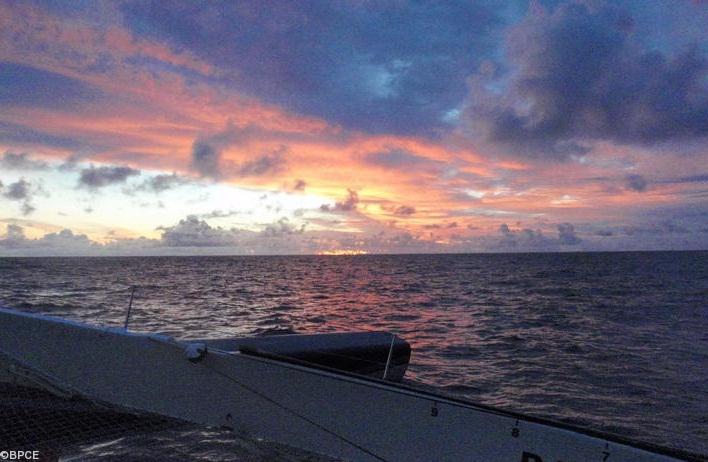 Après une nuit très chaude en température extérieure, pour les hommes du bord du Maxi Banque Populaire V, la journée à venir s'annonce comme celle d'hier : chaude, au près, avec un vent de nord-est d'une quinzaine de noeuds, qui pourrait prendre un peu plus d'est au fil de la journée.