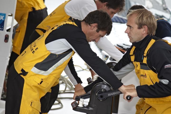 – Quart n° 2 Frédéric Le Peutrec, chef de quart ; Emmanuel Le Borgne, barreur/ régleur, responsable médical ; Thierry Duprey Du Vorsent, barreur/ régleur, responsable mécanique ; Ronan Lucas, n° 1/ régleur, responsable sécurité.