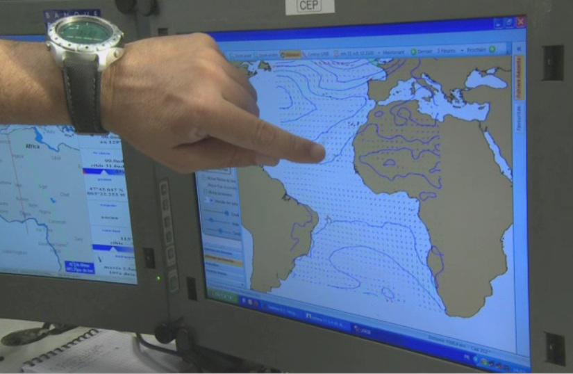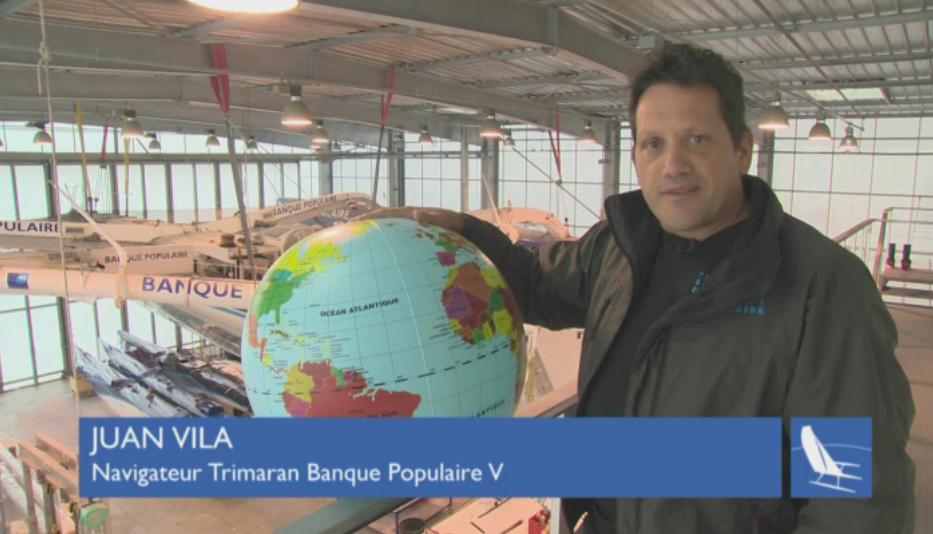 http://www.voile.banquepopulaire.fr/Maxi-Trimaran-Banque-Populaire-V/Video-le-tour-du-monde-meteo-avec-Juan-Vila-3276.html pour la video.