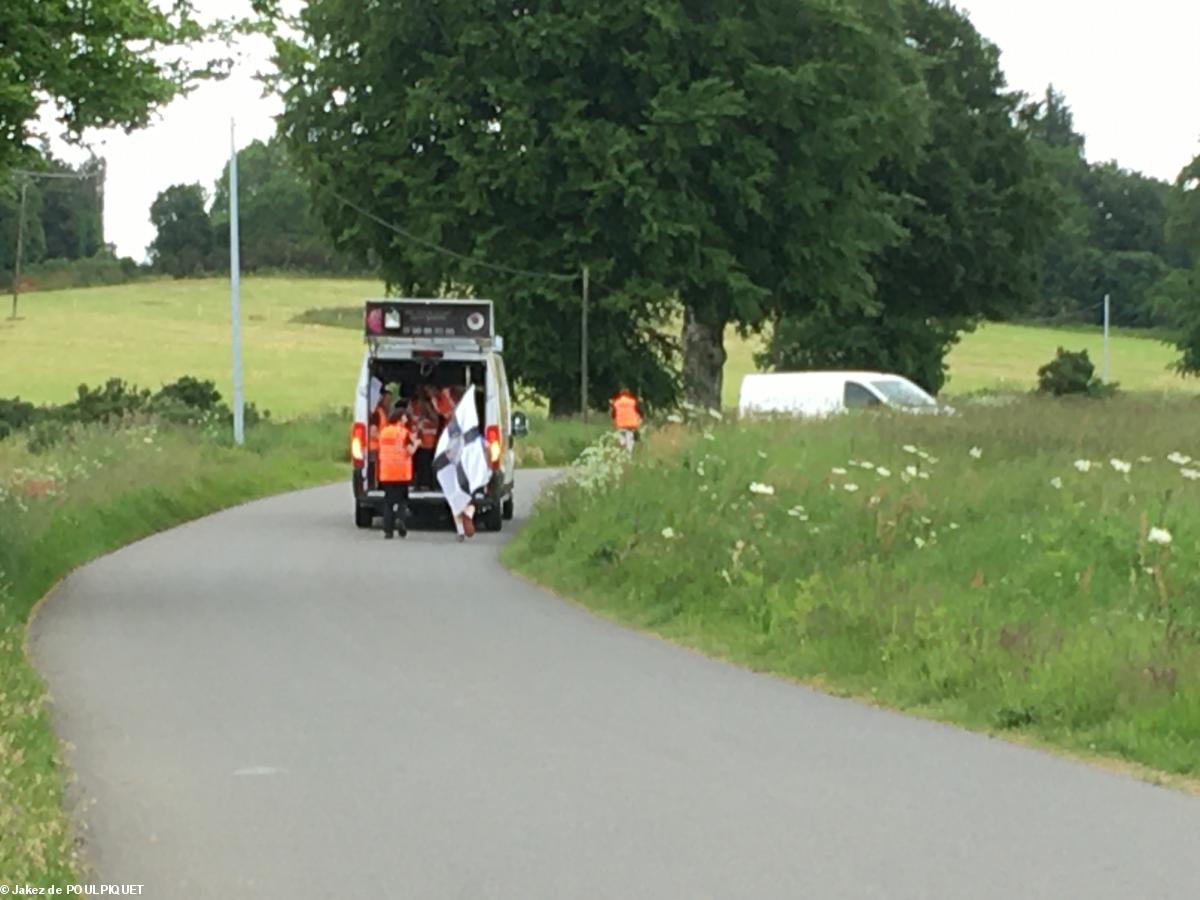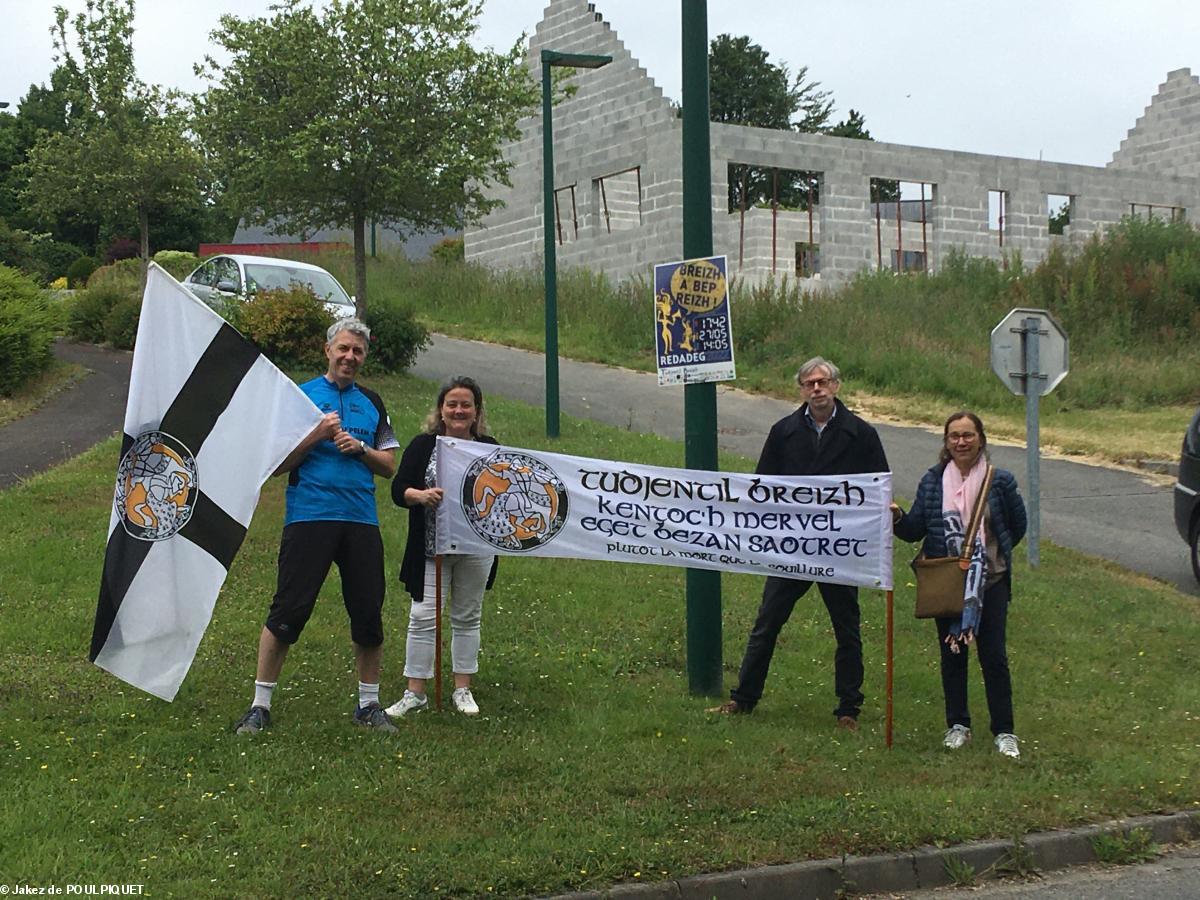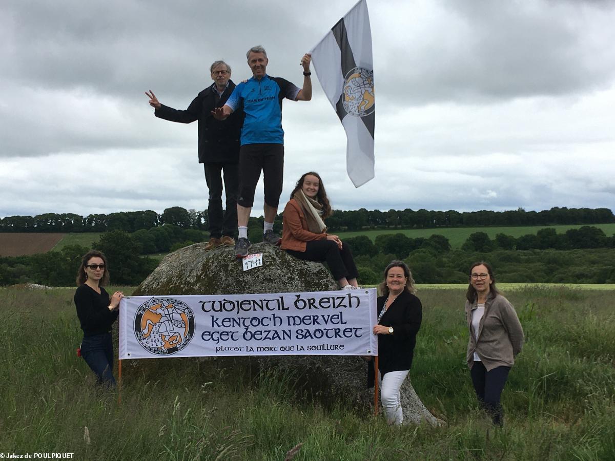 Gérard de BOISBOISSEL, membre de TUDJENTIL BREIZH (Association de la Noblesse Bretonne / ANB) a couru pour la langue bretonne pendant 3 km depuis les grilles du Château du Pelem jusqu'au km 1744,encouragé par sa famille et Jakez de POULPIQUET, Président de TUDJENTIL BREIZH venu de Rennes avec son épouse.