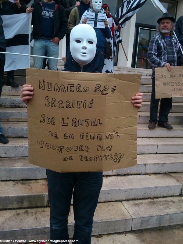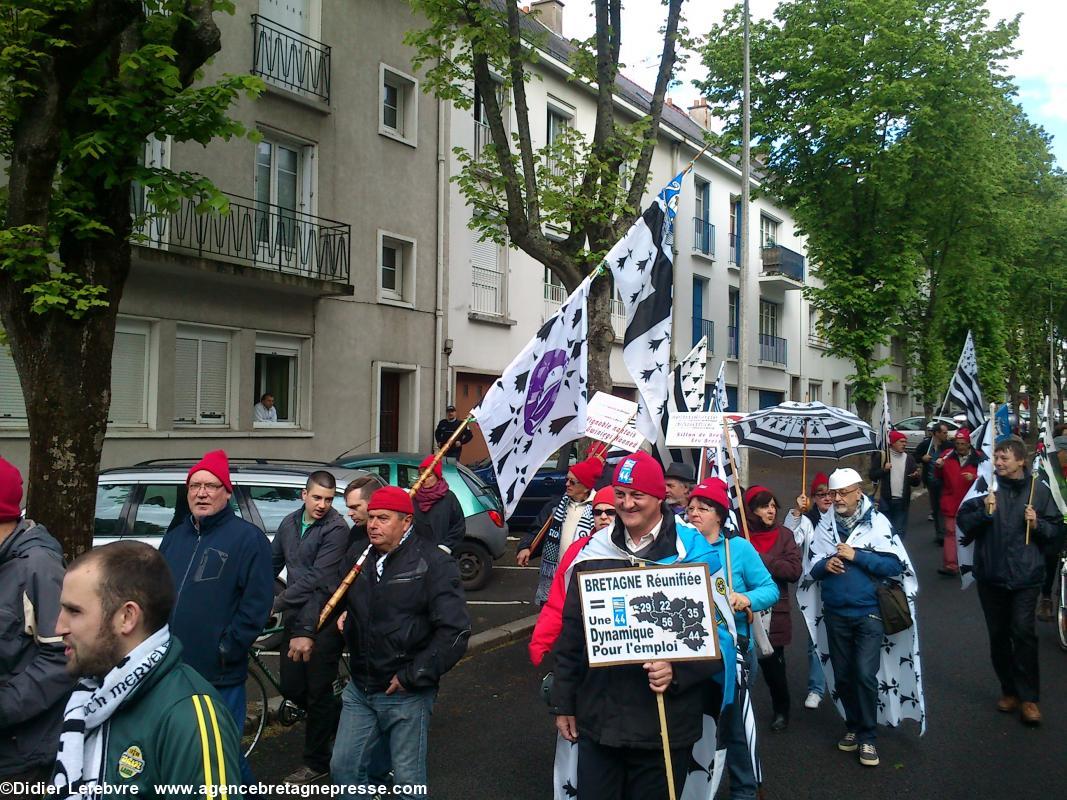 En écho à la manifestation du 26 avril des Bonnets rouges à Brest, une manifestation pour l'emploi en Bretagne et pour le soutien aux prisonniers Bonnets Rouges