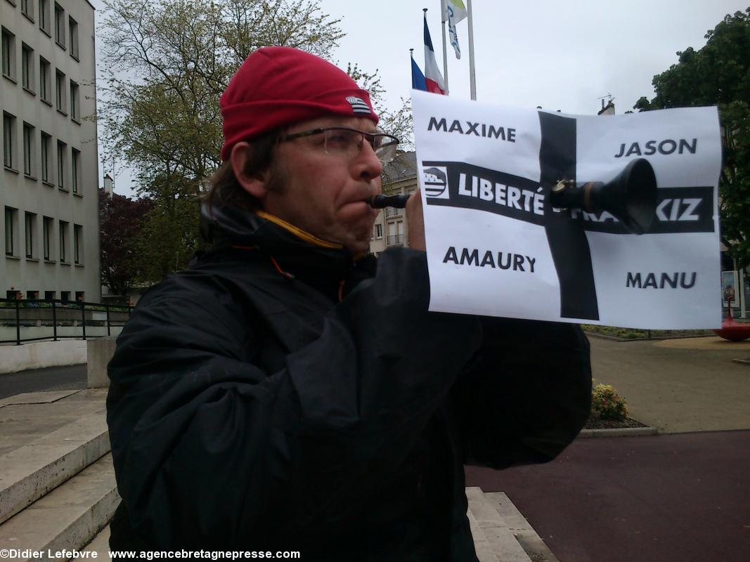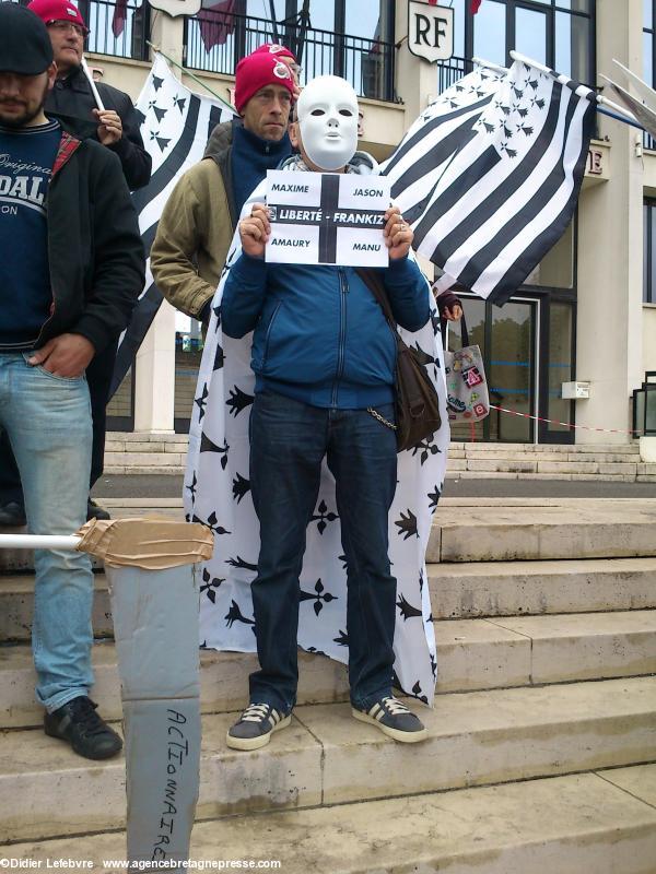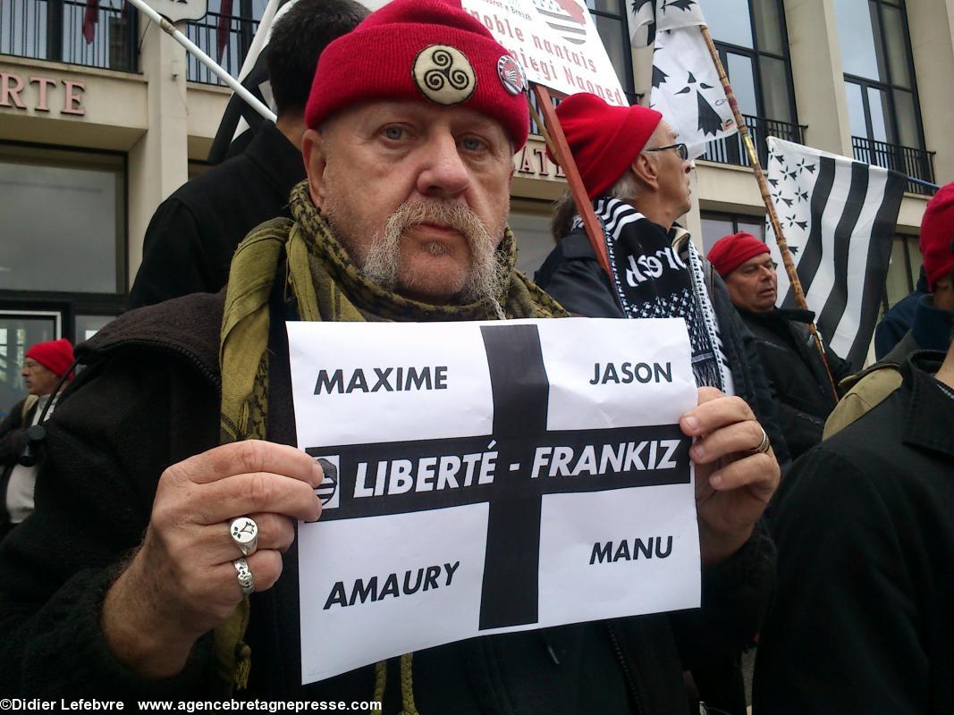 L'autre objet de cette manifestation était d'apporter un message de soutien aux prisonniers que les Bonnets rouges n'hésitent pas à appeler « prisonniers politiques ». Ils sont au nombre de quatre. La veille de la manifestation du 19 avril à Nantes, onze militants Bonnets rouges avaient été mis en garde à vueAussi sur ABP…Manifestation historique à Nantes aujourd'hui pour une région Bretagne réunifiée