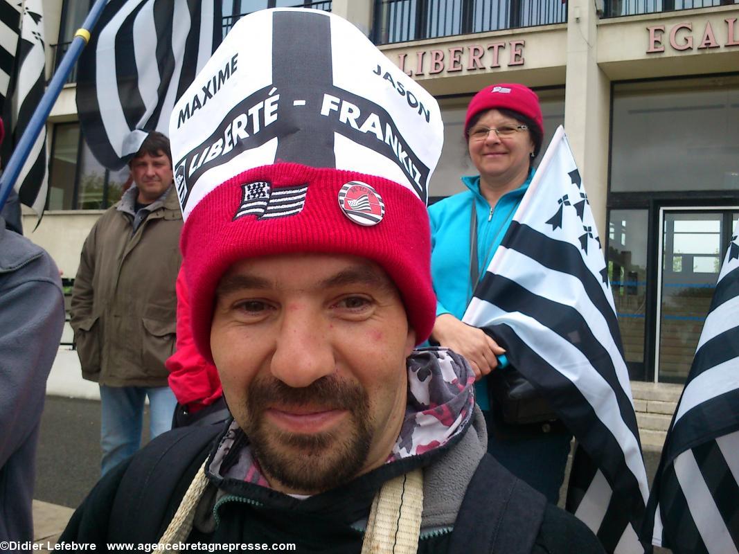 - Manifestation du 1er mai des Bonnets rouges à Saint-Nazaire. Olier Anezo, du pôle ouvrier 44 des Bonnets rouges