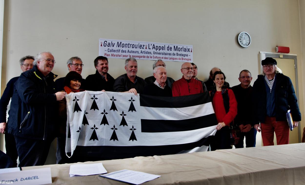 Onze membres du collectif des artistes, auteurs et universitaires de Bretagne, se sont réunis à Morlaix au siège de l'association Ar Falz – Skol Vreizh pour lancer un appel afin de sauver les langues bretonnes. En effet l'Unesco a classé la langue bretonne dans la catégorie des langues en voie d'extinction.