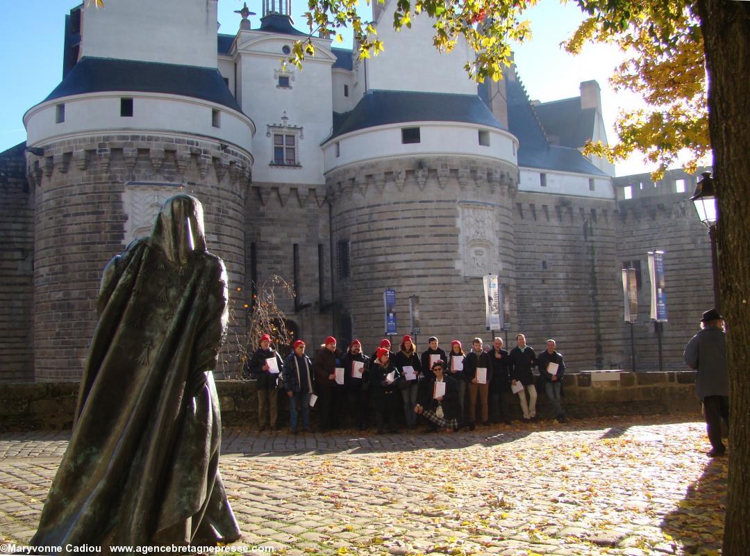 - En allant poser devant le château des ducs de Bretagne de Nantes et devant la duchesse.
