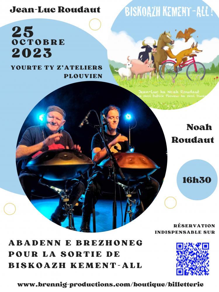 A l'occasion de la sortie de "Biskoazh kement-all", le nouvel album en breton de Jean-Luc et Noah Roudaut pour les enfants de 0 à 7 ans, Brennig Productions organise un concert à Plouvien dans la yourte de Ty Z'Ateliers le mercredi 25 octobre à 16h30.