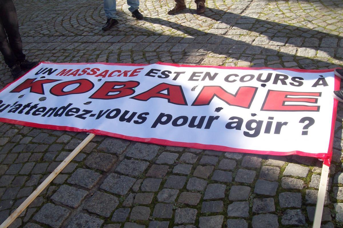 A l'appel du Centre culturel des Kurdes de Nantes, 400 personnes ont manifesté le 10 octobre dans les rues du centre de Nantes pour condamner l'inaction de la communauté internationale à Kobanê. Les Kurdes ont affirmé leur détermination à travers des slogans comme : « nous sommes tous PKK », « Kobanê partout, résistance partout », « Turquie assassin, Europe complice ». Des partis politiques (PCF, NPA) et des associations (Centre culturel des Alevis de Nantes, Mères du Samedi) ont exprimé leur solidarité en se mêlant à ce cortège très dynamique et compact, formé en particulier de jeunes. Après les prises de parole place Royale, où a été réaffirmée la nécessité de donner aux Kurdes de Syrie les moyens de se défendre, la foule s'est dispersée dans le calme.