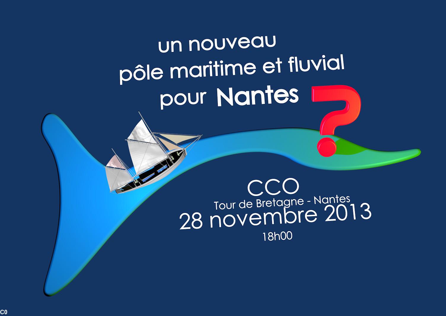 La mer et le fleuve à Nantes seront les principaux thèmes de la prochaine conférence-débat à Nantes le 28 novembre de 18 h à 20 h au CCO (Centre de communication de l’Ouest) sis dans la tour de Bretagne, place de Bretagne. Conférence organisée par la Coordination Nantes-Mer-Fleuve. http://www.cco-nantes.org/index.php?view=details&id=843%3AUn+nouvel+avenir+maritime+et+fluvial+pour+Nantes+%3F&option=com_eventlist&Itemid=51