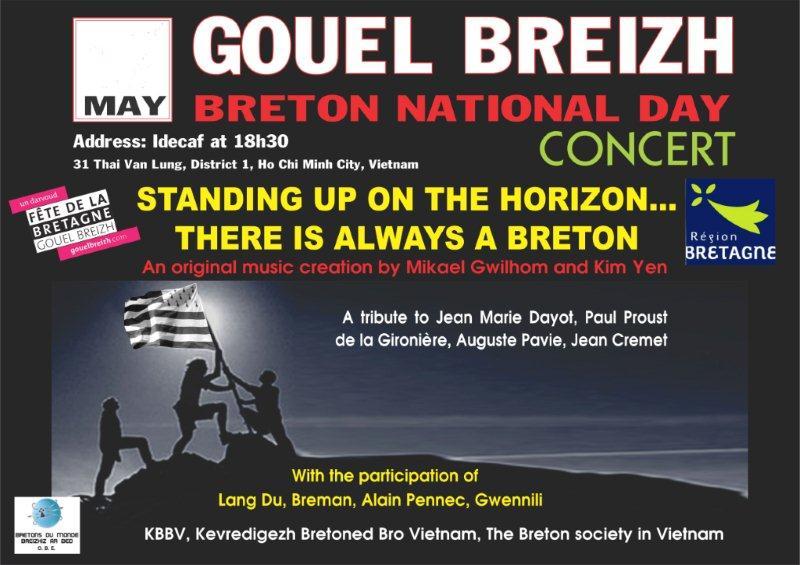 19h40- 20h : Mikael Gwilhom (qui outre ses fonctions de) président de Bretons du Monde réside au Vietnam à Ho Chi Minh City. C'est un cadre dirigeant pour toute l'Asie de la société bretonne Vitalac, Mikael est aussi un artiste musicien et chanteur breton qui gagnerait à être plus connu. Il sera ce soir là aux Philippines pour un spectacle qu'il a produit en hommage à Paul Proust de la Gironière, gentilhomme breton né en 1797 près de Nantes. Voyageur aventurier, scientifique et chirurgien c'est en 1824 qu'il établit un immense élevage à Jala-Jala aux Philippines et c'est aussi depuis Jala-Jala, 189 ans plus tard, qu'un autre Breton en aventurier moderne, Mikael nous apportera le témoignage de sa vie dans une zone du monde en pleine évolution.