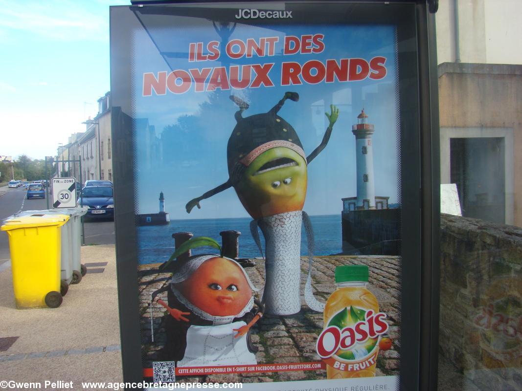 N\'y a-t-il pas mieux à faire que de reprendre le slogan \"ils ont des noyaux ronds\" (faisant référence à la chansons paillarde :\"ils ont des chapeaux ronds\"...) par un titre en breton en faveur de la culture, genre \"Ni Breizhiz a galon\" et d\'illustrer leur campagne de publicité par un joli couple de danseurs, sur fond de faïencerie Henriot, avec en fond une harpe celtique, une bombarde et une cornemuse ?