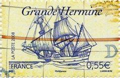 — la \"Grande Hermine\" est l\'un des trois navires avec lesquels le Malouin Jacques Cartier effectua son deuxième voyage au Canada en 1535-1536. Une belle réplique de ce navire avait été réalisée dans le parc Cartier-Brébeuf, à Québec, non loin de l\'emplacement où Jacques Cartier et ses compagnons hibernèrent, dans des conditions très difficiles, lors de ce voyage. Malheureusement, la rudesse du climat canadien en est venue à bout et ce navire n\'existe plus.