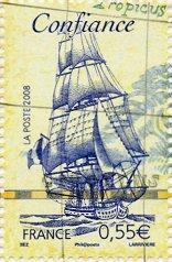 Après une jolie série de six timbres-poste consacrée aux phares émise en 2007 et comprenant trois phares bretons – Ar Men, le Grand-Léjon et le phare du Cap Fréhel – les Postes françaises ont émis en juin dernier un nouveau bloc-feuillet de six timbres à 0,55 € – pouvant donc servir à affranchir le courrier courant – intitulé \"Bateaux célèbres\".