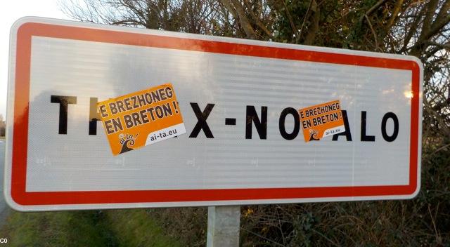 Nous dénonçons donc cet abandon et invitons les élus de Theix-Noyalo à se ressaisir et à mettre en place une réelle politique linguistique volontariste en faveur de la langue bretonne (à savoir un engagement à revenir sur leur décision, signer un objectif de niveau 3 de la charte avec l'office public de la langue bretonne, nommer un élu en charge de la langue et confier le suivi de cette charte à un agent, afin de demander...plus de traductions !).