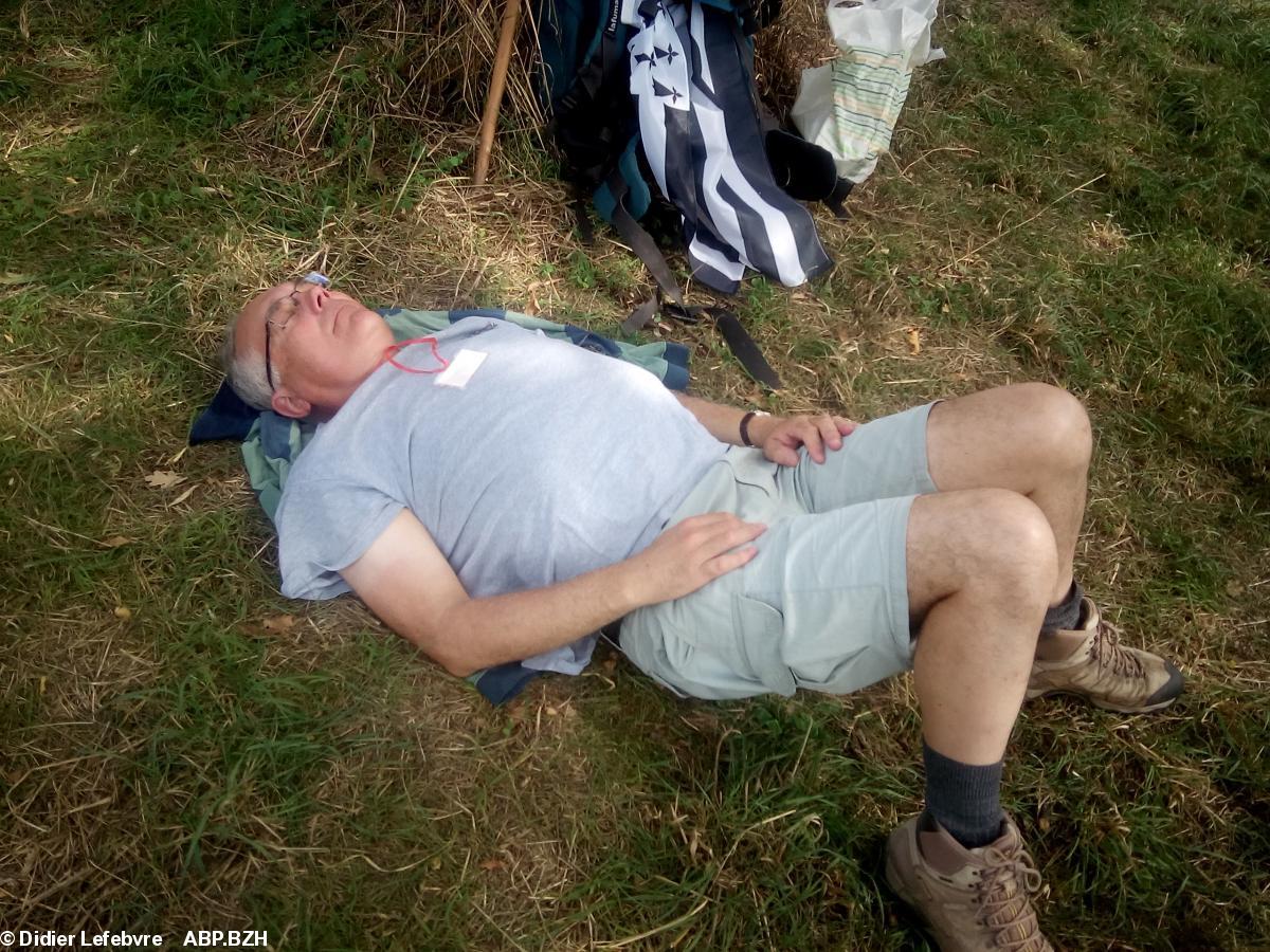 Les campeurs nous ont assuré avoir passé une bonne nuitée, avant le départ du lendemain, et une fin de première marche autour d'un bon repas à Redon, précédé d'une visite sur le site de la Bataille, et dans le nouveau cimetière de Saint-Nicolas de Redon afin de voir la sculpture cinétique imaginée par Christian et Jean-Pierre Baudu (voir photo).
