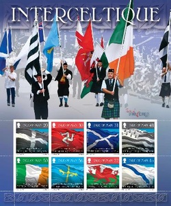 C'est le 12 mai 2008 que la poste de l'Ile de Man a émis une série de 8 timbres consacrés aux drapeaux nationaux et aux langues de chacun des pays participant au Festival Interceltique de Lorient : Bretagne, Cornouaille, Pays de Galles, Irlande, Écosse, Île de Man, Galice et Asturies.