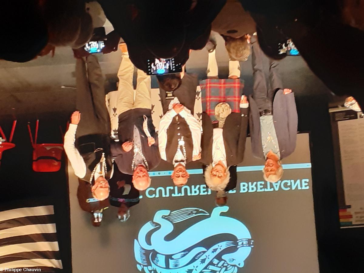 Enfin, les Tri Yann, 50 ans de carrière. Savent rappeler que la Bretagne, ce n’est pas que le Château des ducs de Bretagne à Nantes, ce n’est pas un musée. La Bretagne, c’est l’entreprise aussi, c’est l’avenir. La présence de Jean-Guy Le Floc’h, PDG d’Armor Lux, tout comme la remise du Collier de l’Hermine à Pascal Jaouen en est la brillante démonstration. Un petit couac toutefois, la présence appuyée d’un certain Jean-Marc Ayrault dans le film de présentation, puis cité comme meilleur maire de Nantes depuis le XVIIe siècle a fait quelques remous dans le public. Ce fut, rappelle Jean-Louis Jossic, lui qui lança Nantes dans la démarche Ya d’ar brezhoneg, de l’Office public de la langue bretonne, et Nantes obtint sa reconnaissance de 1er niveau. Dans ses promesses d’avant campagne, Johanna Rolland nous promet de signé la charte « niveau 3 » durant sa mandature. Là, on doute un peu. Signons d’abord le « niveau 2 ».Tous les films seront disponibles sur le site de l’ICB/SUAV https://www.skoluhelarvro.bzh/ et les photos déposées sur cet article, dès que sera résolu le problème technique.