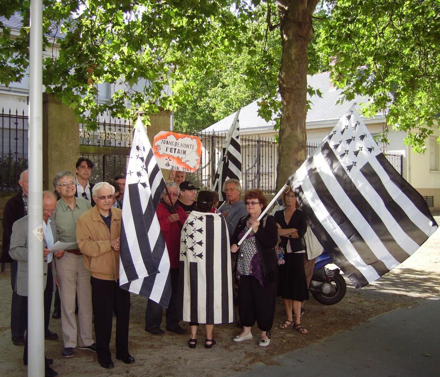 À l'appel de Bretagne Réunie et 44=Breizh une vingtaine de personnes se sont réunies à 18 h devant la sous-préfecture de Saint-Nazaire pour marquer symboliquement le 70e anniversaire de la partition de la Bretagne décidé par le gouvernement collaborationniste de Vichy.