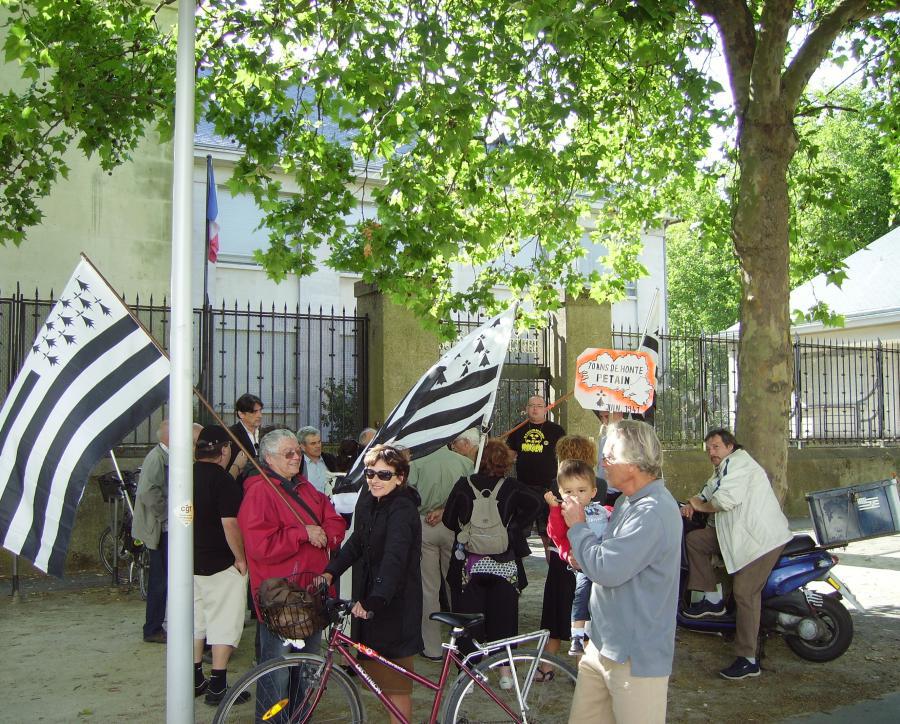 À l'appel de Bretagne Réunie et 44=Breizh une vingtaine de personnes se sont réunies à 18 h devant la sous-préfecture de Sant-Nazer / Saint-Nazaire pour marquer symboliquement le 70e anniversaire de la partition de la Bretagne décidé par le gouvernement collaborationniste de Vichy.
