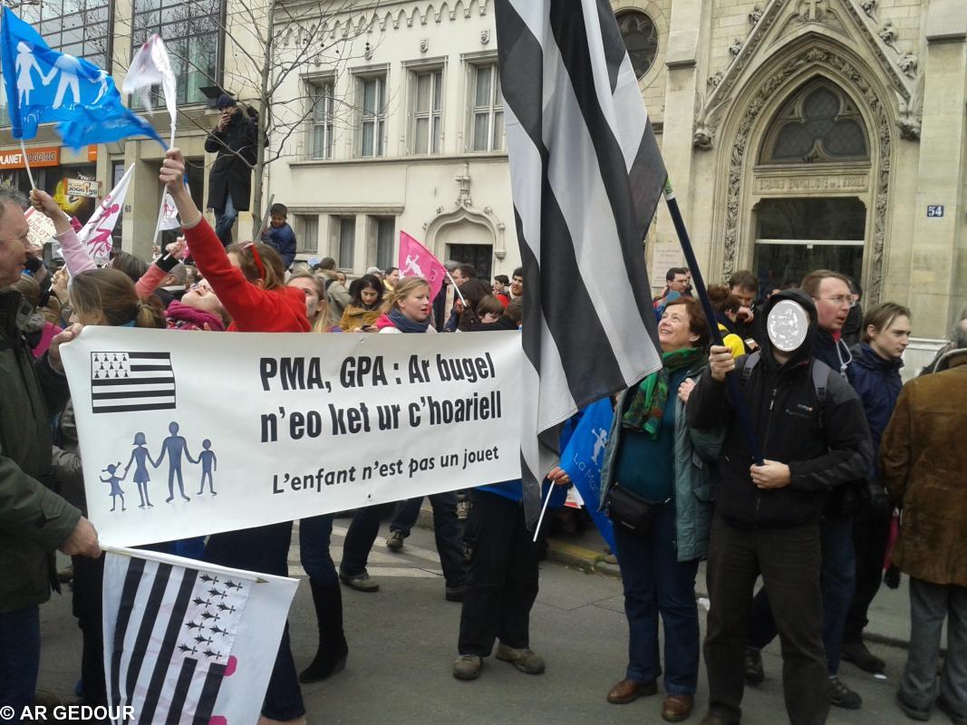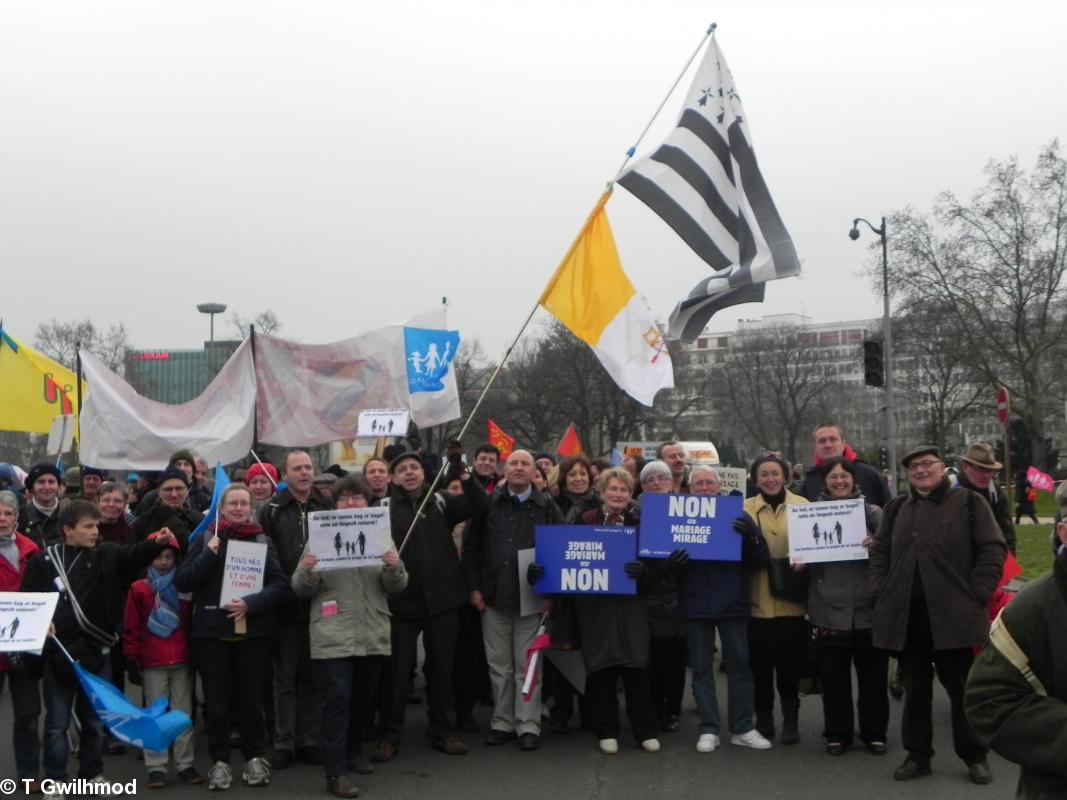 Kalz a vannieloù \"Gwenn-ha-du\" a veze gwelet er renk kentañ. En o zouez hini Emglev An Tiegezhioù a vanifeste gant muzulmaned ha religionoù all a-enep al lezenn-se a zo diazezet war ar geñverelouriezh : al lezenn hervez an ideologiezh-se ne rank mui doujañ d\'al lezenn naturel a zo ar memes hini en holl relijionoù met ouzh ar \"volontez jeneral\" hepken. http://emglev.wordpress.com