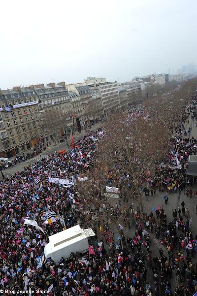 Etre 300.000 hervez ar polis, hag 1.400.000 a dud, hervez aozerion ar "Manif Pour Tous", a oa disul e Pariz o vanifestiñ a-enep an "Eured Homo".
