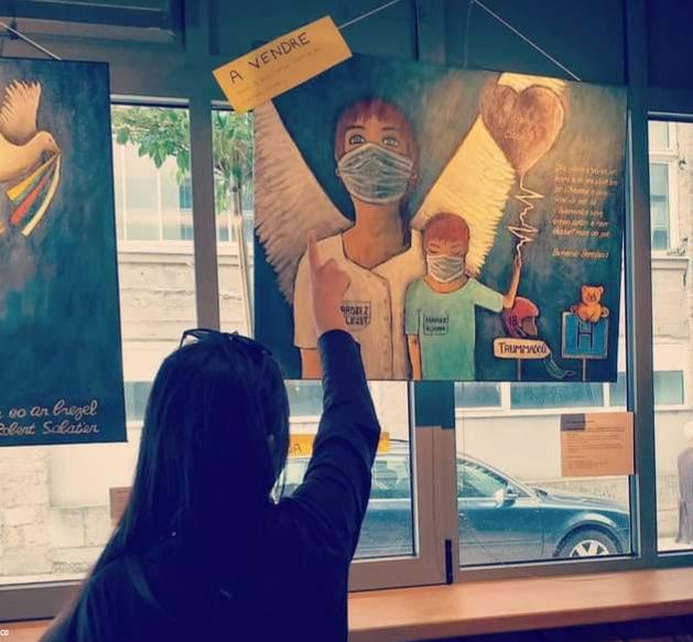 Anna Preden vend un tableau "Harozed" ("Heros" en français) pour l'association Grain de sel (enfants malades). Ce tableau parle des soignants, mais aussi des malades. Un hommage pour eux qui se battent chaque jour. Il est visible à l'expo "Faltazi ha gwirvoud" à La Baleine déshydratée (Quimper). Les bénéfices iront entièrement à l'association en cas de vente du tableau. L'association Grain de sel finance des actions concrètes pour aider les enfants...