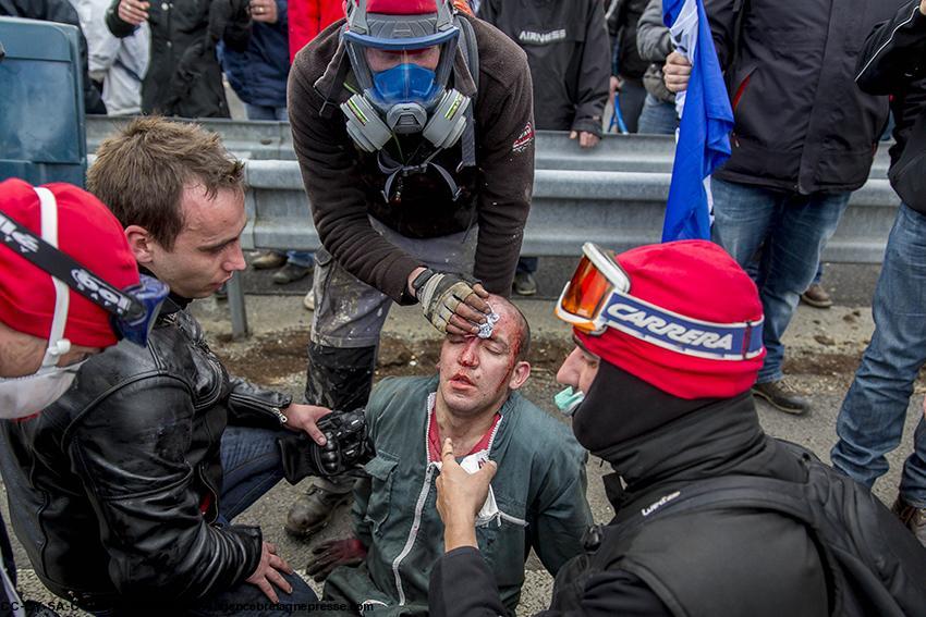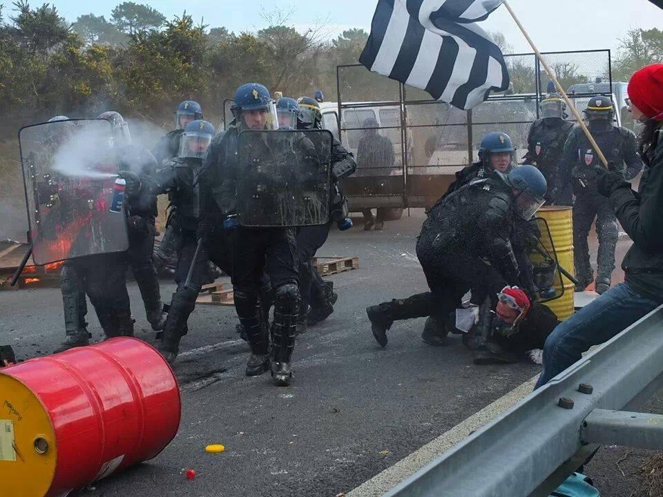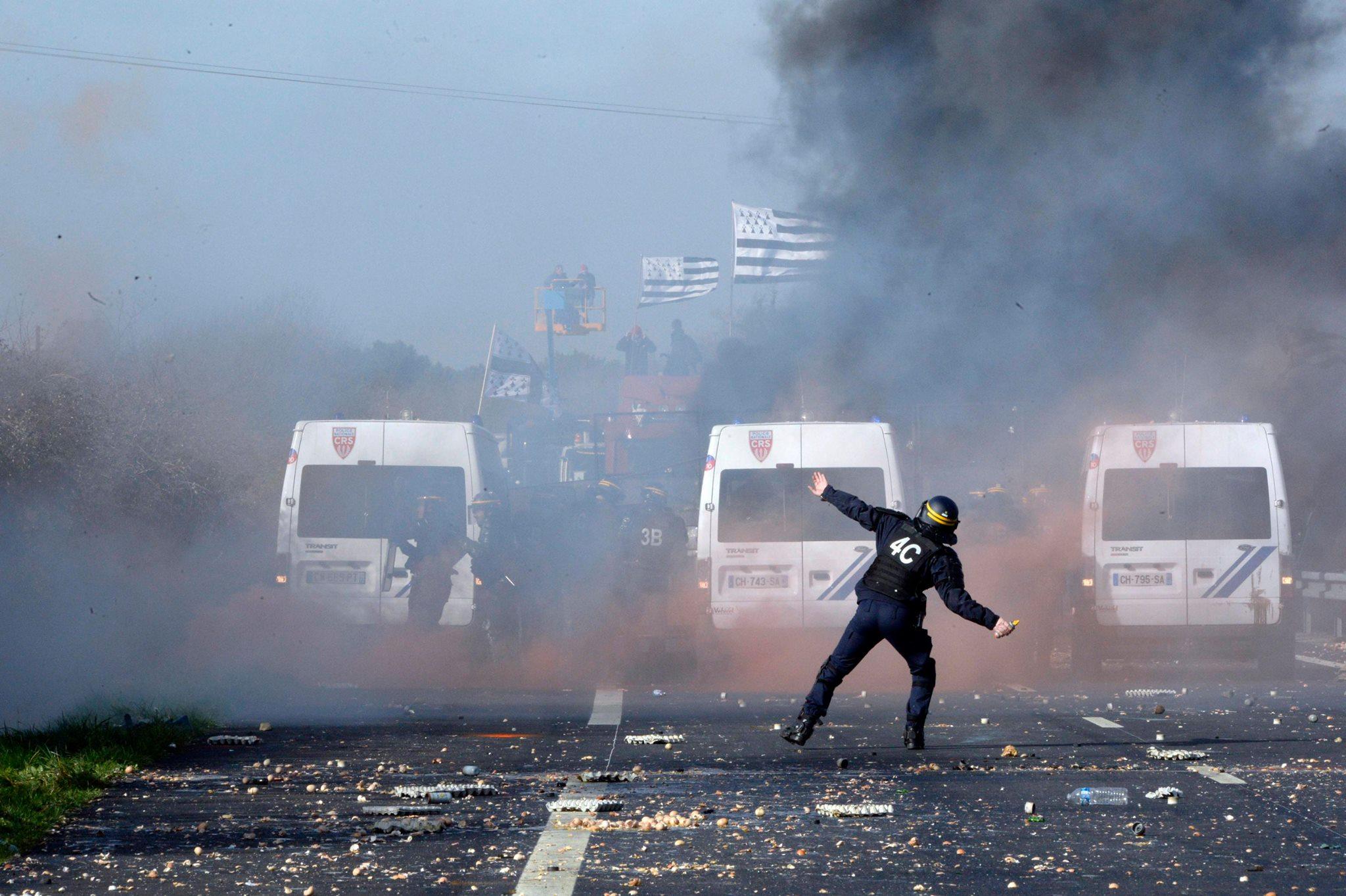 Les manifestants avaient apporté des oeufs, mais, quelques-uns avaient des projectiles plus offensifs. Les gendarmes et les CRS ont riposté par des jets de grenades lacrymogènes et des tirs de flash-balls.