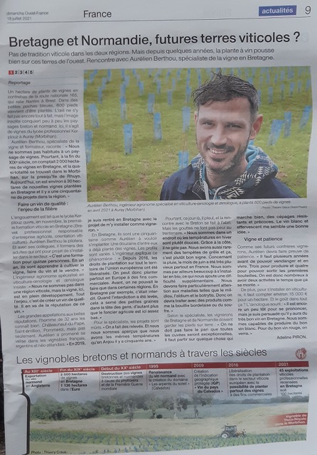 Suite à l'article de Ouest-France du dimanche 18 Juillet concernant le retour des vignes en Bretagne et en Normandie, les trois organisations Vignerons-Artisans de Bretagne, Comité des vins bretons et Produit en Bretagne tiennent à rappeler que la vigne est présente en Bretagne nantaise depuis l'époque romaine.