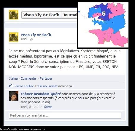 Vincent Le Floch, antérieurement connu pour sa carte de nationalité bretonne et son refus de payer les impôts français, s'était déclaré candidat aux législatives, dans la 5e circonscription du Finistère