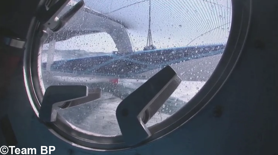 Kevin Escoffier, responsable du bureau d'étude et navigant à bord du Maxi Banque Populaire V, nous invite à visiter l'intérieur du trimaran. De la cuisine aux bannettes de repos en passant par le placard à cirés