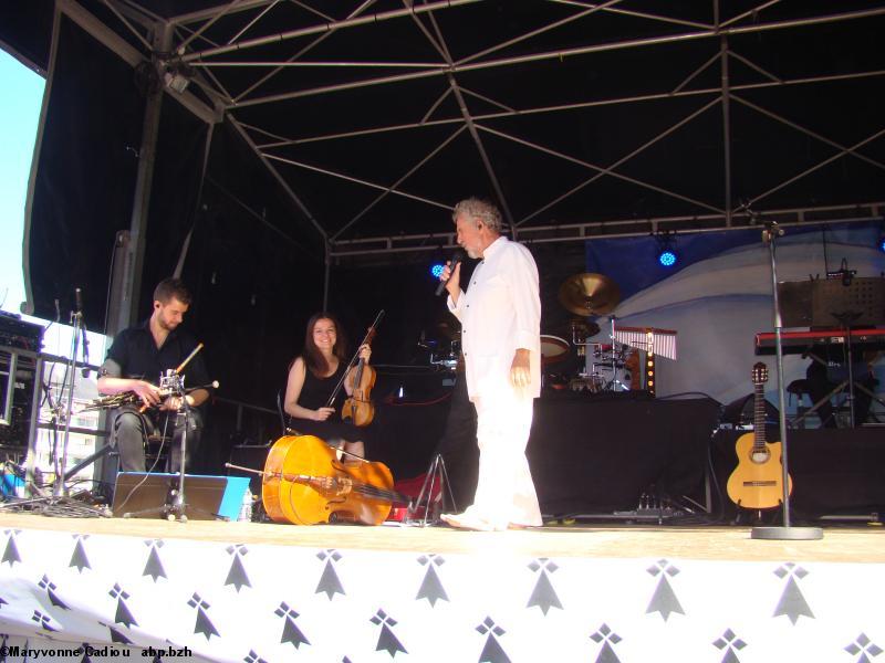 Un complément de qualité, ajouté récemment, dont nous donnons un extrait du texte : http://culture.celtie.free.fr/fetebretonne20162servat.htm , sonorisé avec un extrait de "Sur la montagne de Brasparzh", de l'album Sous le ciel de cuivre et d'eau (2005). Le légendaire chanteur breton nous a présenté, sous une voûte estivale d'or et d'azur et non pas Sous le ciel de cuivre et d’eau, son tout nouveau spectacle " 70 ans… à l‘ouest ! ", au travers duquel, il retrace les grands moments de sa vie et les influences majeures qui ont inspiré et nourri ses 50 ans de carrière. Pour ce programme, les chansons très connues ou plus intimistes, choisies par l’artiste, fusionnent, avec subtilité, humour, émotion, poésie, engagement et insouciance. L’excellence de ce brillant et ample concert, où la voix et le regard de Gilles, sur scène, pieds nus et de blanc vêtu, étaient intenses. Voici quelques clichés qui retracent ces moments d’émotion, de poésie et de communion que nous a offerts un très généreux Gilles Servat (18 photos).Notes