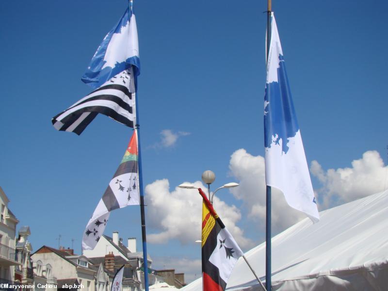 - 8-Les drapeaux au stand de Bretagne Réunie.